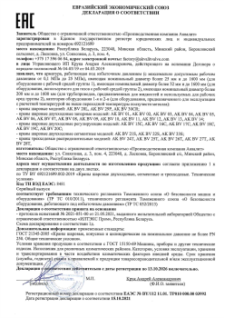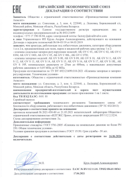 Декларация о соответствии ТР ТС Краны шаровые серии AK BV