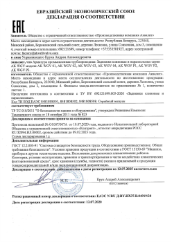 Декларация о соответствии ТР ТС Задвижки шланговые