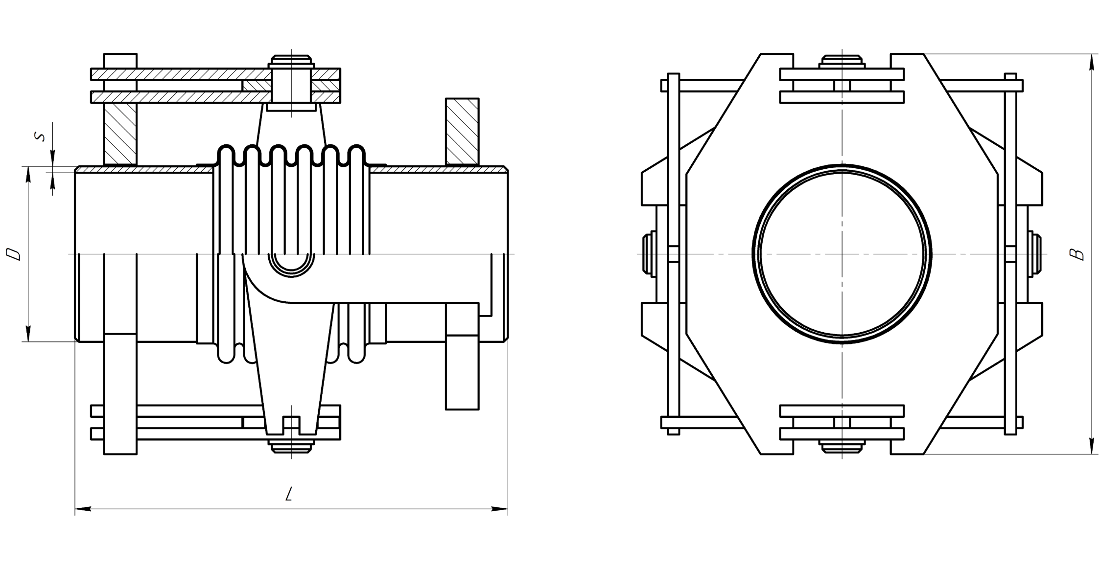 Чертежи углового сильфонного компенсатора AK EBС карданного типа (под приварку)