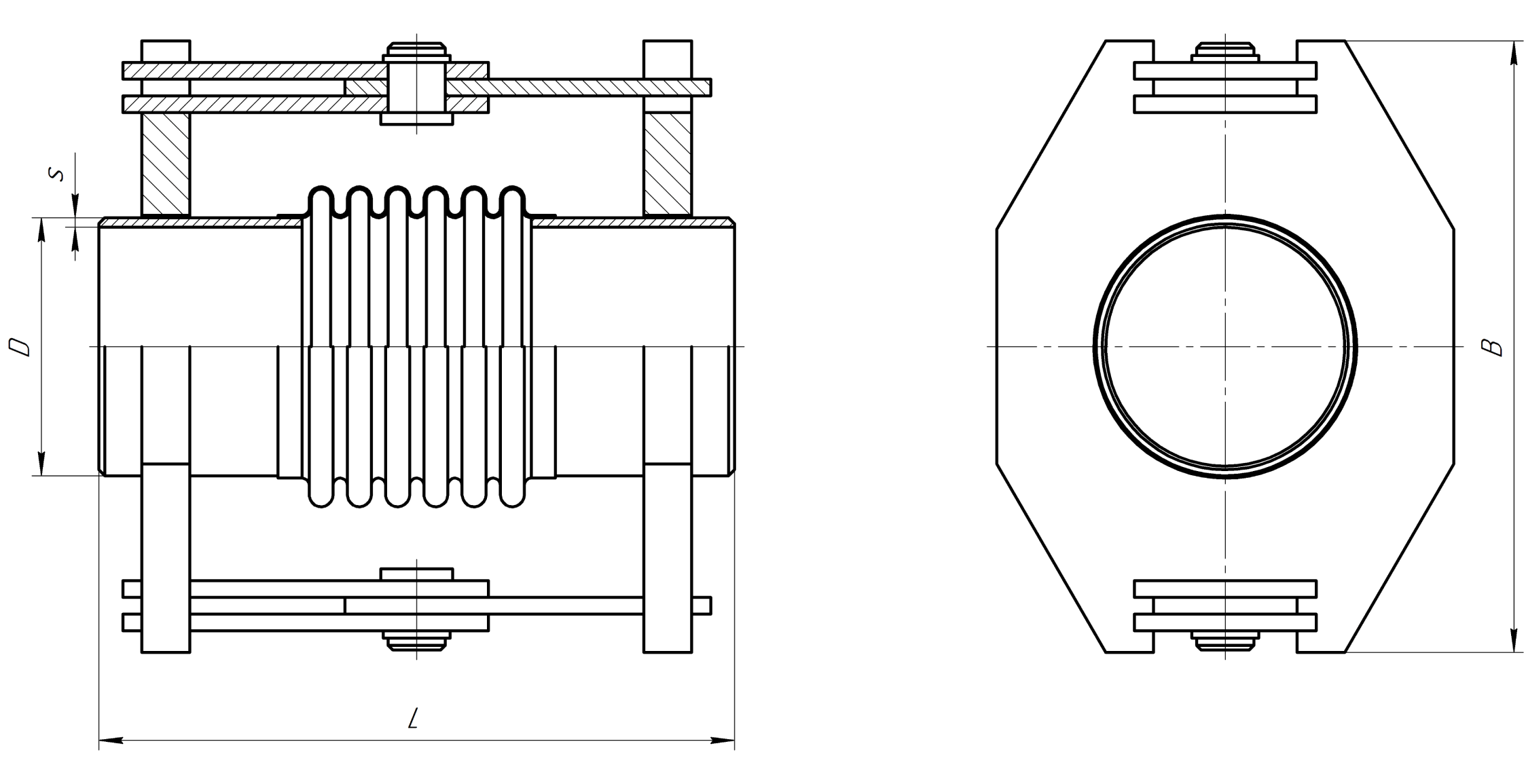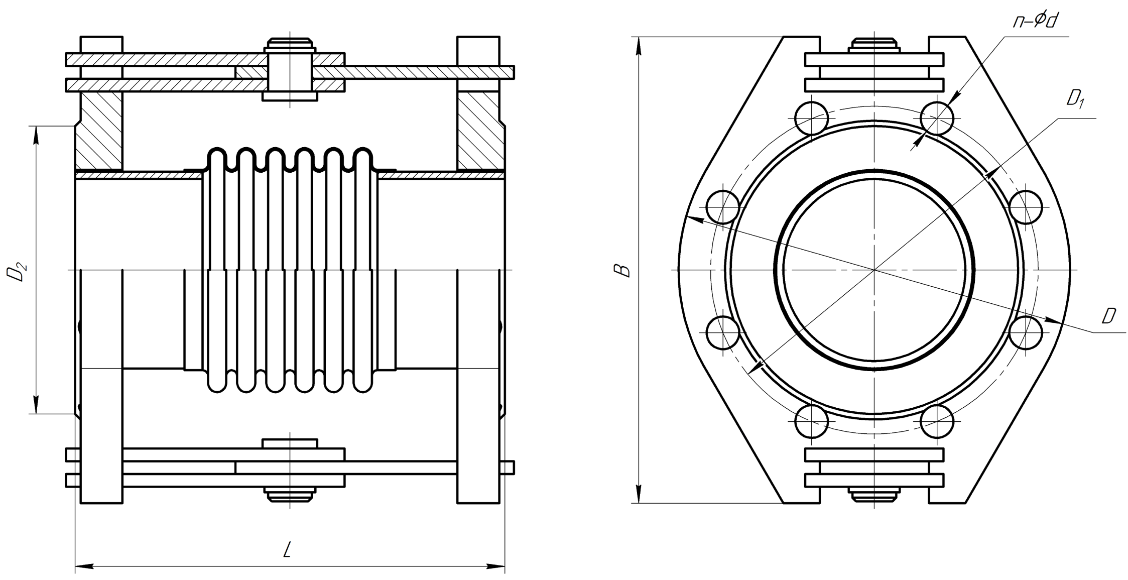Чертежи углового сильфонного компенсатора AK EBС шарнирного типа (под приварку)